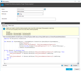 - You need a mapping from your CSV column that stores the Manager lookup value to the new script property. In my sample, this is the mapping column CustomProperty01 in my CSV file to the script property vrtPersonHead.