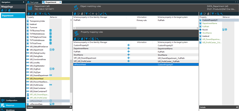 You need to define script property on the OneIM (the left) side of the mapping in the Department objects. In my sample, it is called *vrtPersonHead. *
